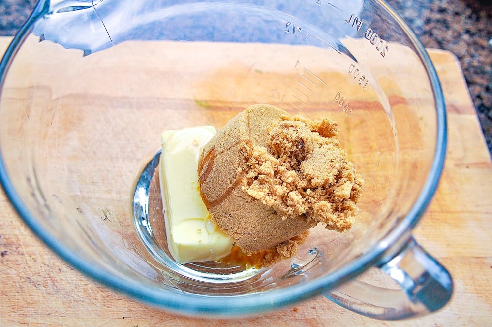 - Combine brown sugar, corn syrup and butter into a microwave- safe bowl, be sure the bowl has higher sides, as the mixture will expand and bubble and you don’t want it to overflow in the microwave.