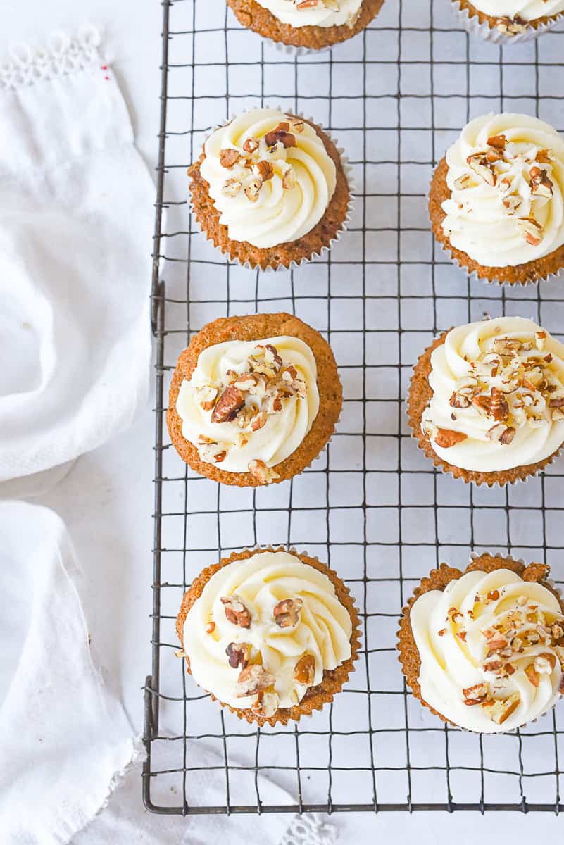 These carrot cake cupcakes are moist and tender and topped with amazing white chocolate cream cheese frosting.
