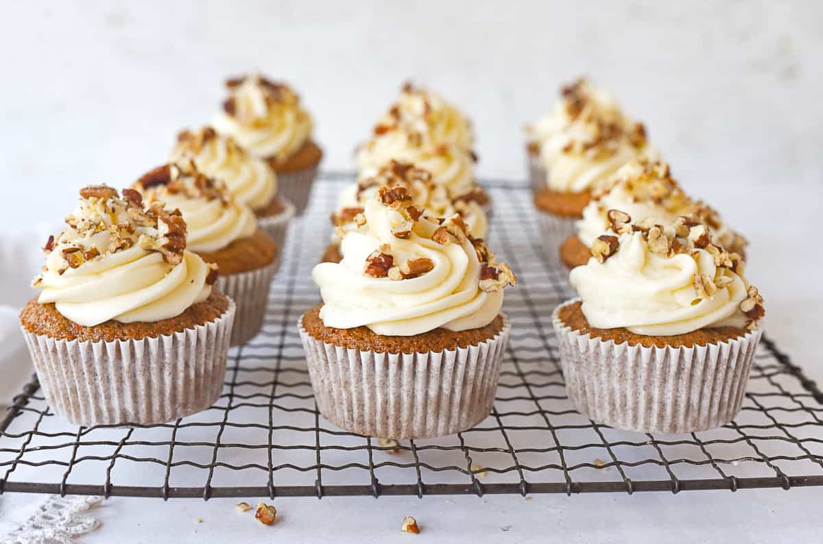- Frost carrot cake cupcakes with white chocolate cream cheese frosting.