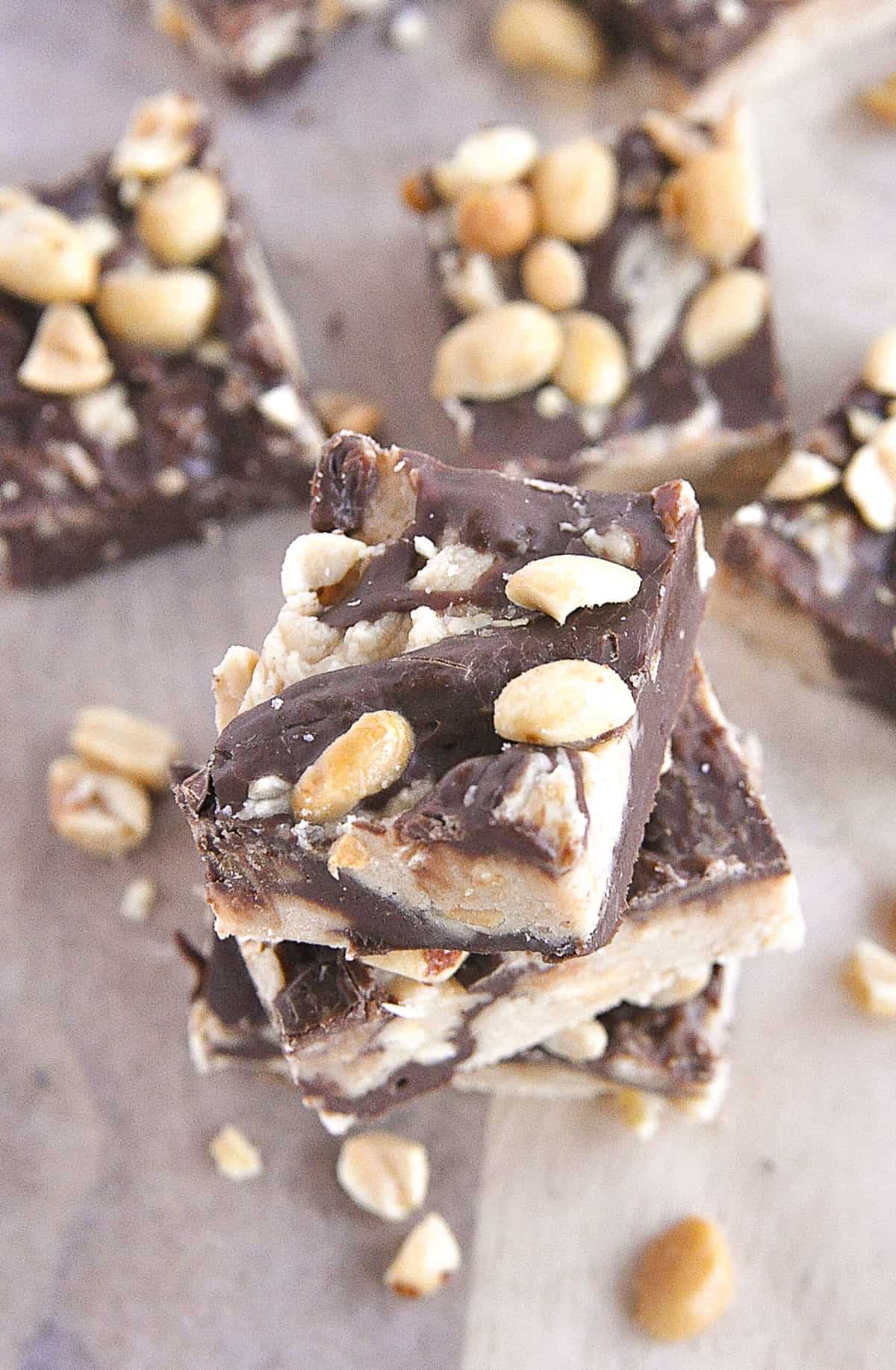 The combination of peanut butter and chocolate is definitely a favorite. This fudge has so much creamy goodness but it also has a nice crunch thanks to the addition of peanuts. The best part though is how quick and easy it is to make. There is no candy thermometer needed!!