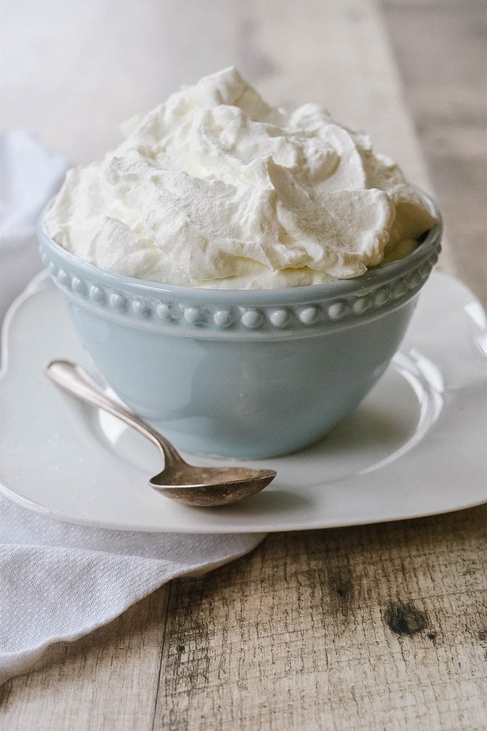 Learning how to make whipped cream is simple and it tastes SO MUCH better than the stuff that comes out of the can. Once you start making your own homemade version you will never go back to the canned stuff. I love using it on pies and cakes, topping off my hot chocolate with it and serving it with fresh berries. And I’m not opposed to just eating it by the spoonful either!