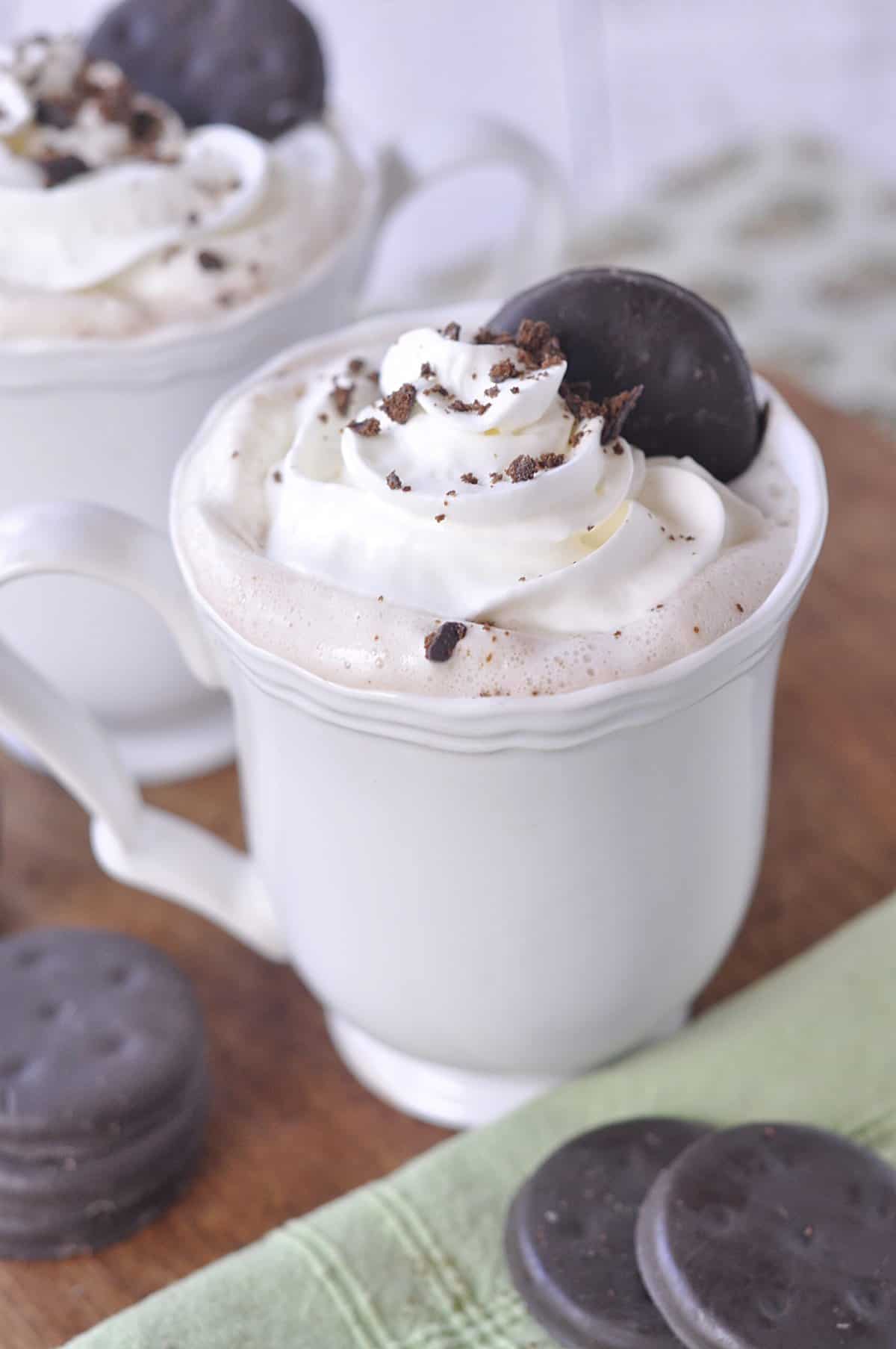 - Make it extra indulgent. Top with whipped cream, chocolate shavings, or crushed chocolate mint cookies for a fun Thin Mint-inspired finish. A drizzle of chocolate syrup takes it over the top.