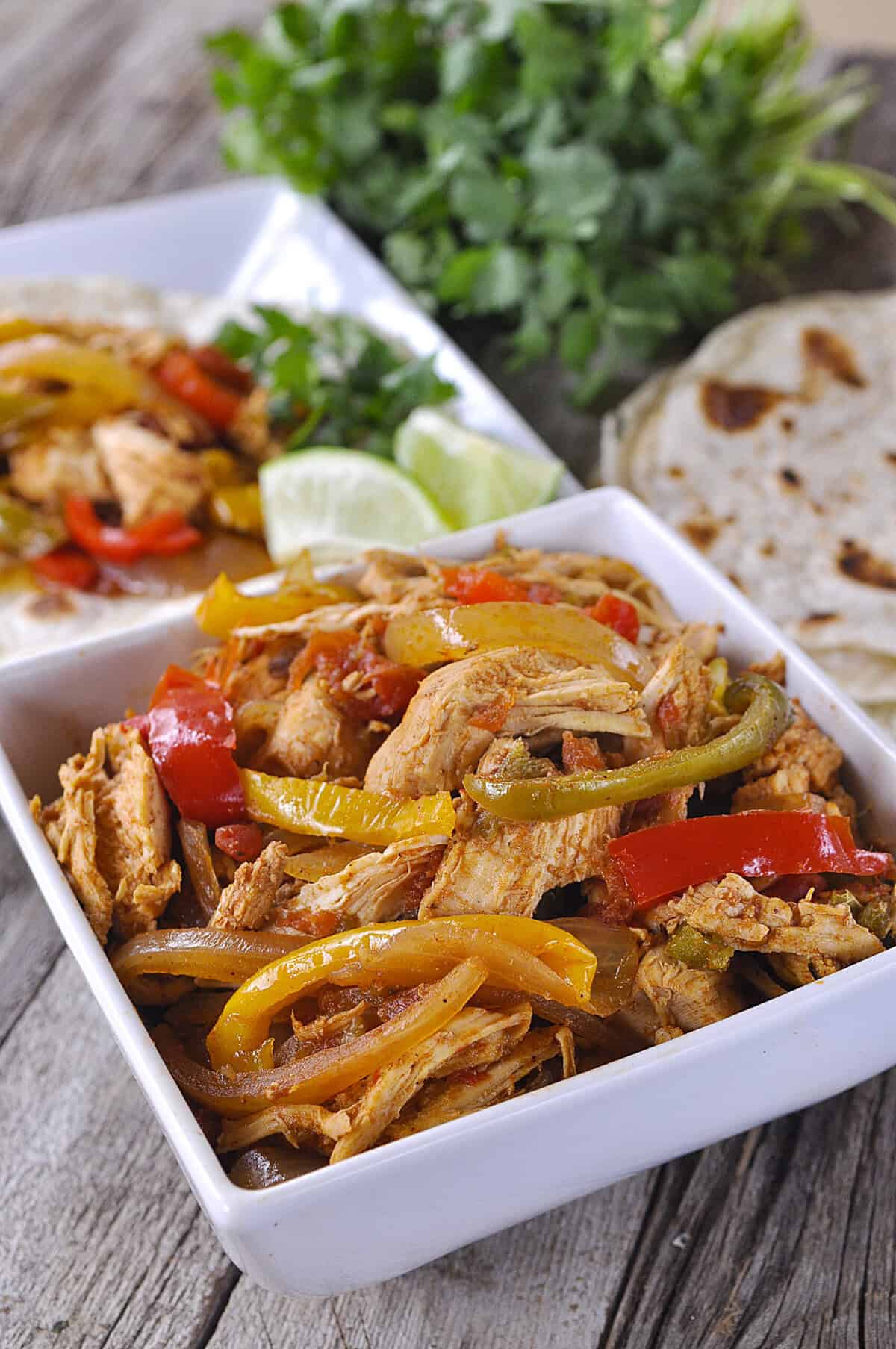 Juicy, flavorful slow cooker chicken fajitas made with tender chicken, peppers, and onions simmered in bold spices. An easy, hands-off dinner perfect for busy weeknights!