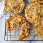 Using a 6 oz. ice cream scoop, make balls of cookie dough and place onto a parchment lined cookie sheet. You will get 18 cookies making them this size, for more cookies, make them smaller.